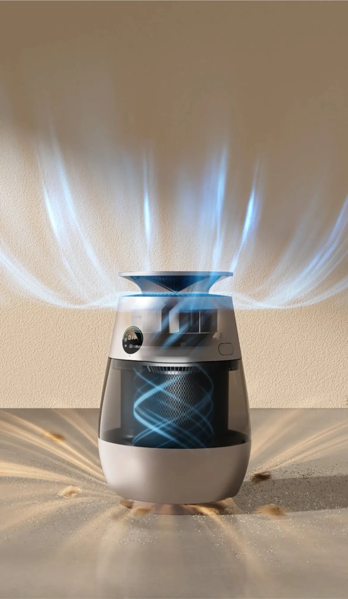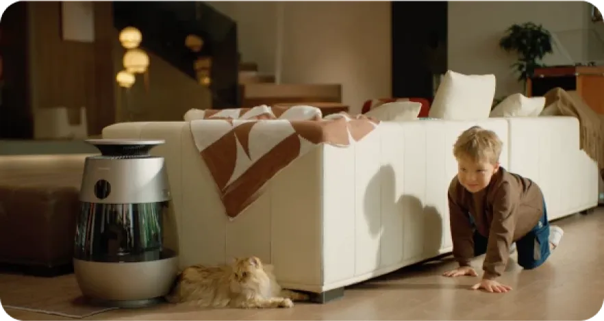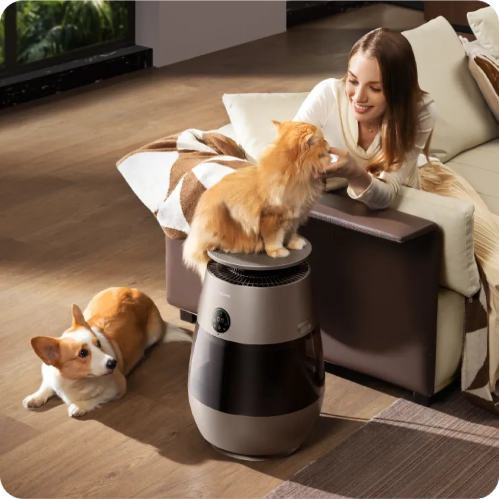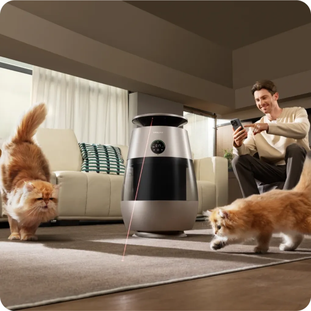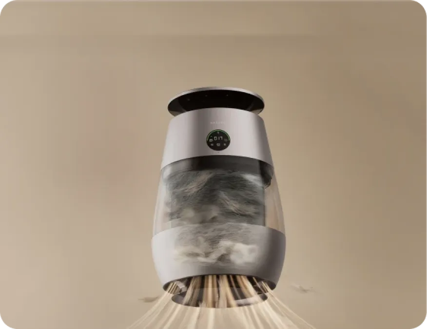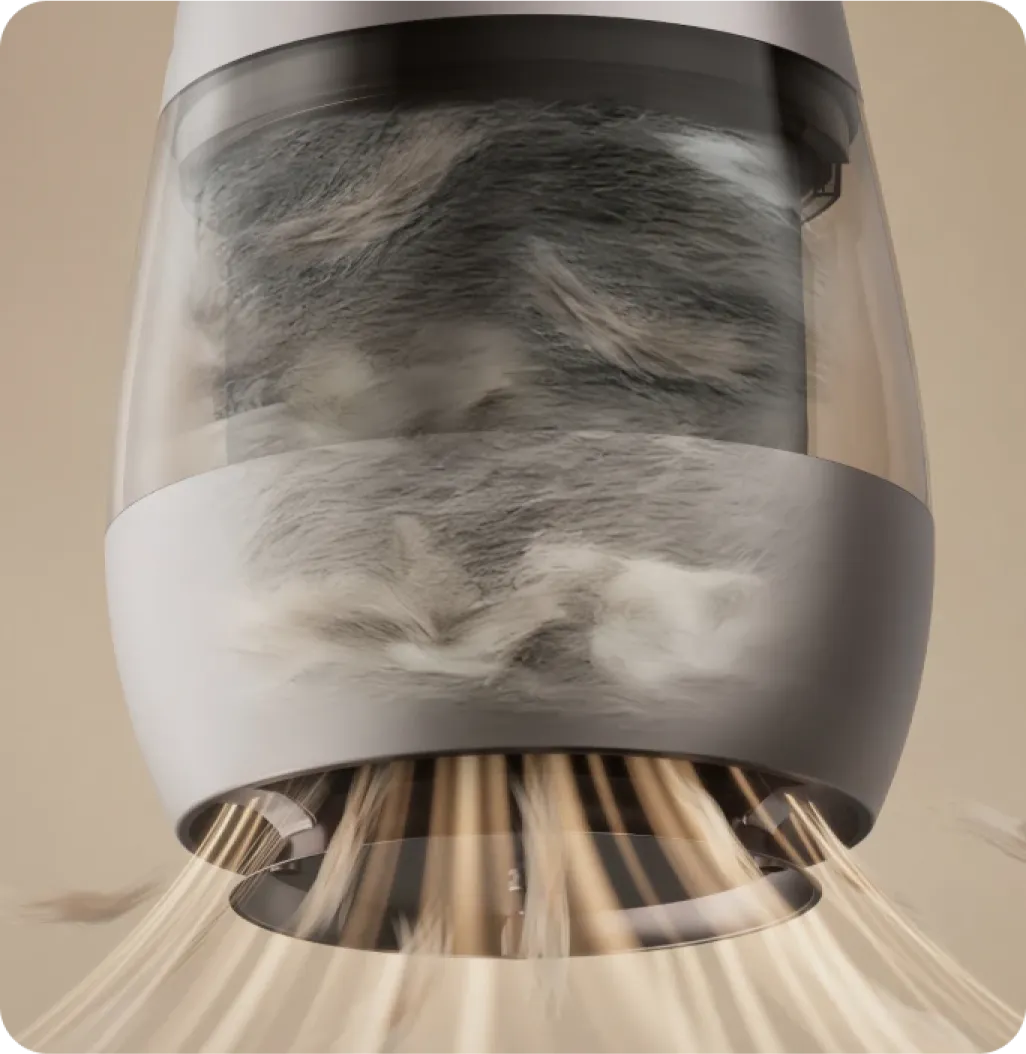 Με τη δυνατότητα απομάκρυνσης τριχών από μακρινή απόσταση*, με αυτόματη συλλογή, πανίσχυρο καθαρισμό και κυκλοφορία υψηλής συχνότητας, μπορεί εύκολα να αιχμαλωτίσει τρίχες που αιωρούνται στον αέρα μετά από ένα έντονο παιχνίδι της γάτας ή την καθημερινή τριχόπτωση, και να απομακρύνει αποτελεσματικά σε ποσοστό 99,9% τρίχες και τούφες που αιωρούνται κάτω από έπιπλα και στα κενά του καναπέ.