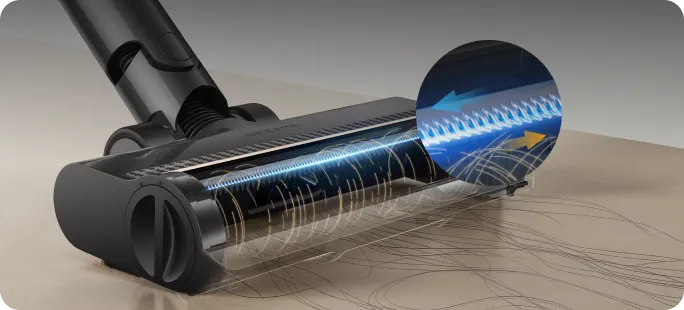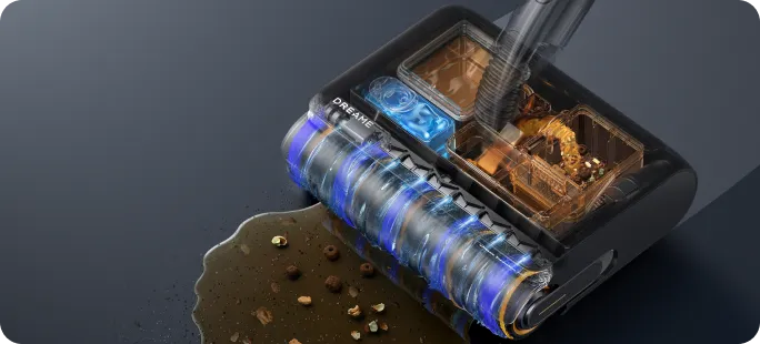 Η περιστροφή υψηλής ταχύτητας του κυλίνδρου παρέχει έντονη ισχύ τριψίματος για κορυφαία εμπειρία καθαρισμού.