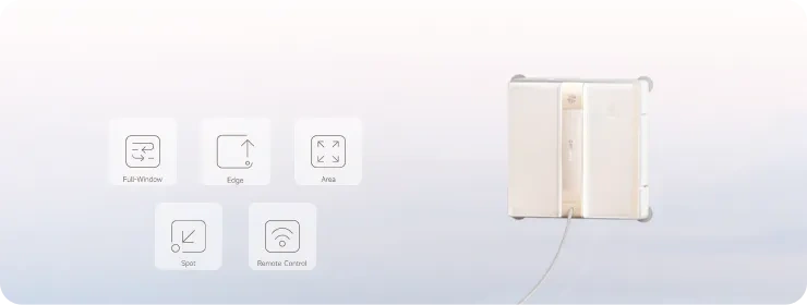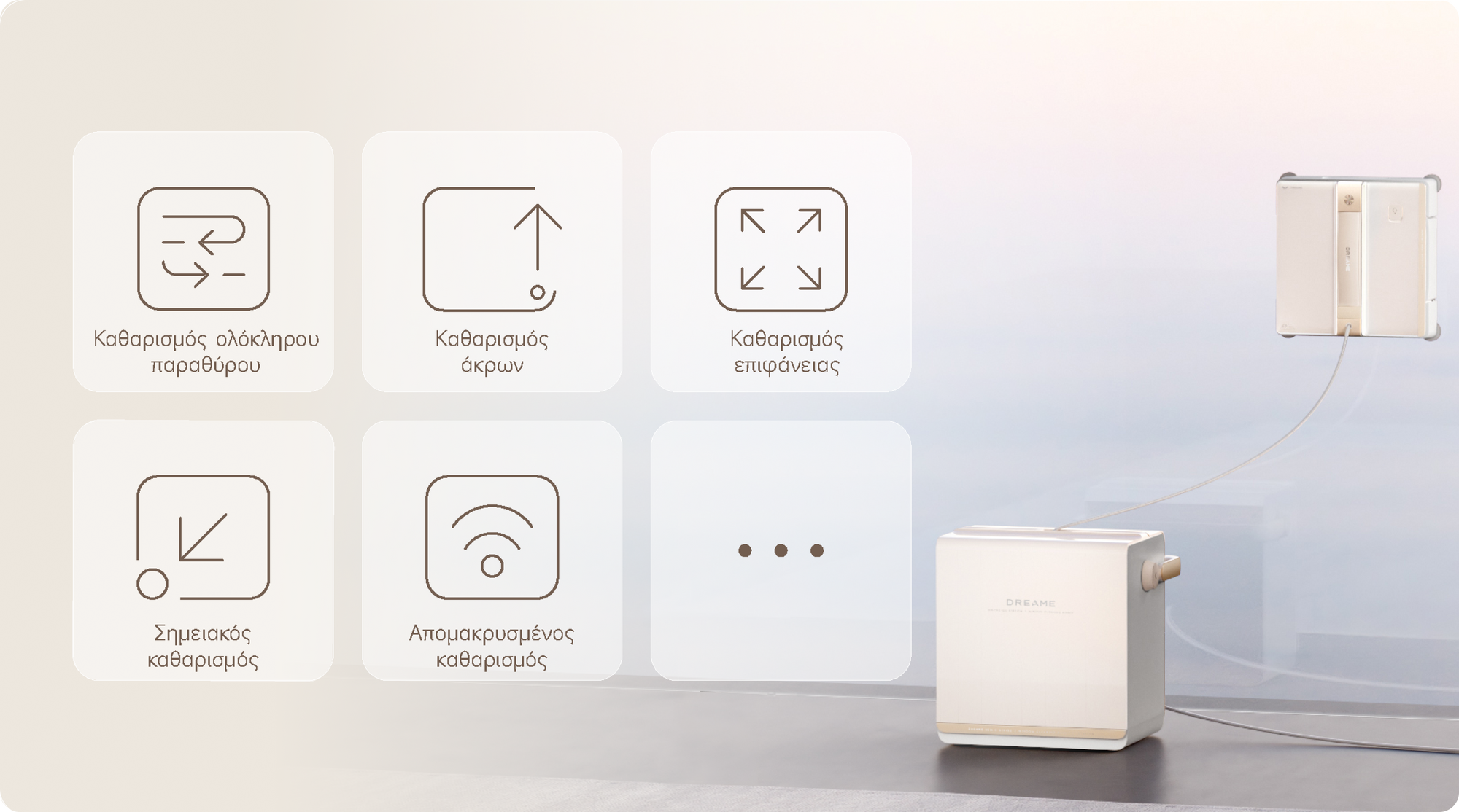 Χρησιμοποιήστε την εφαρμογή Dreamehome για να επιλέξετε μία από τις εξής 5 λειτουργίες καθαρισμού: Καθαρισμός ολόκληρου παραθύρου, Καθαρισμός άκρων, Καθαρισμός επιφάνειας, Σημειακός καθαρισμός και Απομακρυσμένος καθαρισμός.