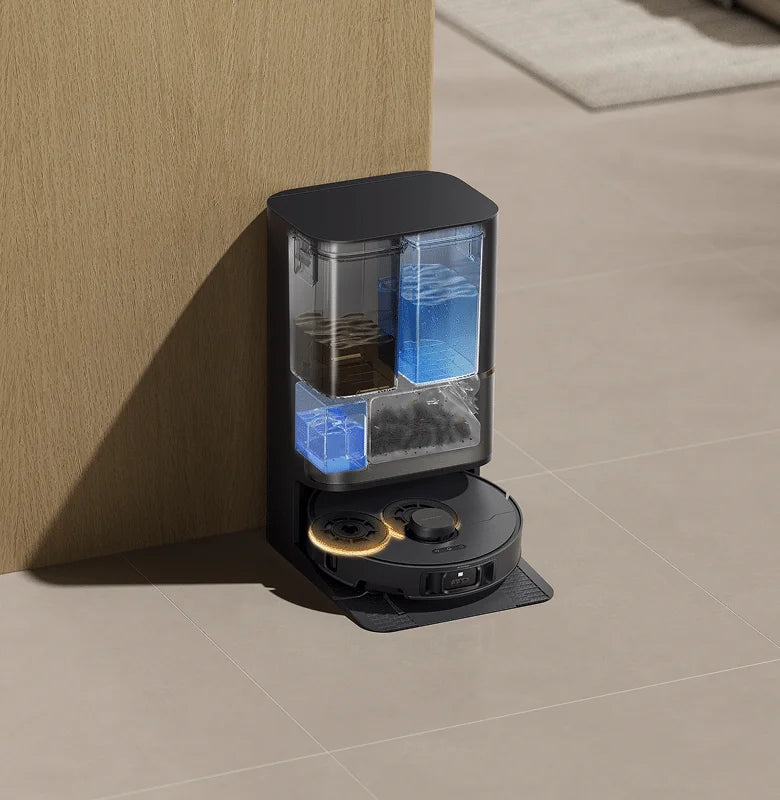 Η L50s Pro Ultra προσφέρει ισχυρή αναρρόφηση για βαθύ καθαρισμό, διπλούς anti-tangle κυλίνδρους για αποτελεσματική απομάκρυνση τριχών και λειτουργία αυτοκαθαρισμού σφουγγαρίστρας με ζεστό νερό 100°C για ενισχυμένη υγιεινή. Ο πλήρως αυτοματοποιημένος σταθμός φόρτισης εκτελεί πλύση, στέγνωμα, αναπλήρωση δοχείου νερού και αυτόματη εκκένωση κάδου σκόνης, μειώνοντας στο ελάχιστο τις απαιτήσεις χειροκίνητης συντήρησης.