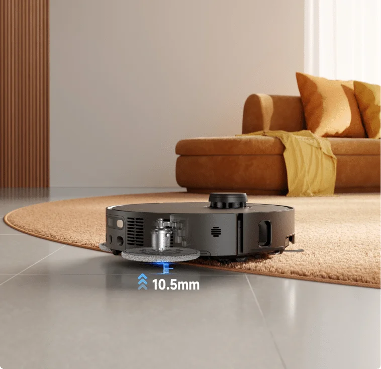 *10,5 mm: Η διαφορά ύψους της ηλεκτρικής σκούπας-ρομπότ είναι 10,5 mm πριν και μετά από την ανύψωση της