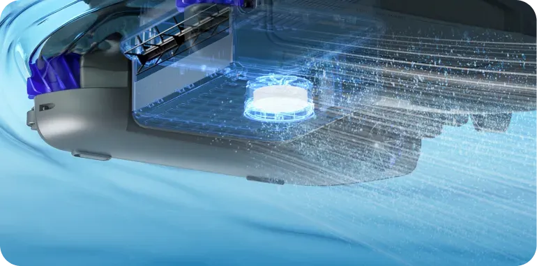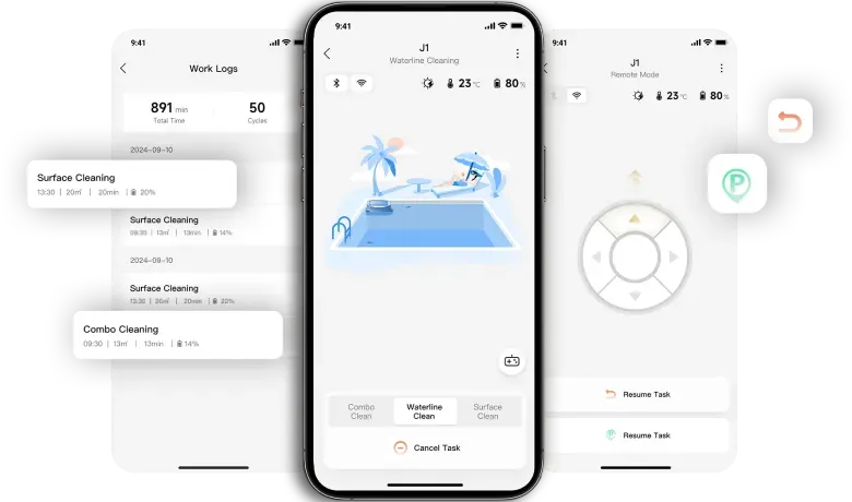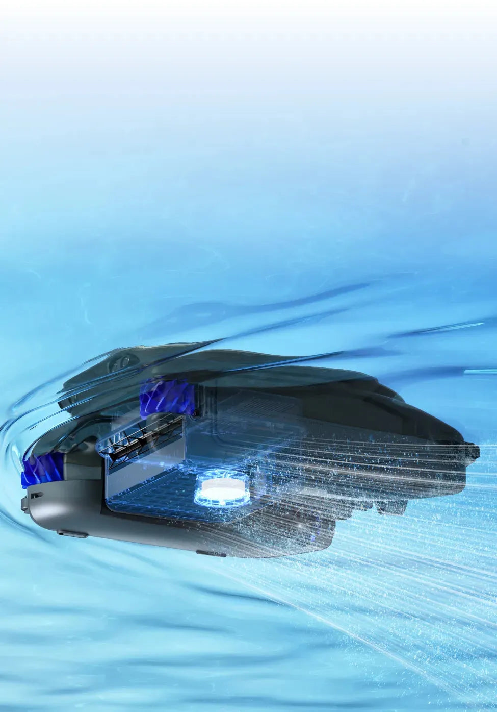 Με προηγμένο σύστημα καθαρισμού, το J1 παρέχει κάλυψη της επιφάνειας της πισίνας σας κατά 360°*, απομακρύνοντας επιδέξια ακαθαρσίες όπως φύλλα, τρίχες, σκόνη και έντομα. Η πανίσχυρη βούρτσα με διπλά ράουλα στοχεύει αποτελεσματικά την περίμετρο και τις γωνίες της πισίνας, αφαιρώντας τους επίμονους λεκέδες και επιτυγχάνοντας βαθύ καθαρισμό, διατηρώντας την πισίνα σας πεντακάθαρη και πάντα έτοιμη για χρήση.