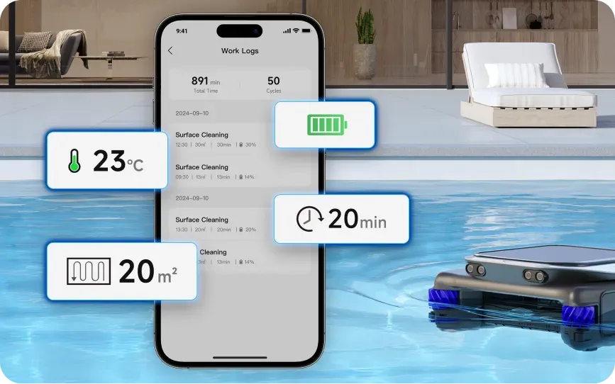 Χάρη στην προηγμένη τεχνολογία PoolSense™, το J1 ανιχνεύει τις άκρες της πισίνας και επιβραδύνει σταδιακά όταν προσεγγίζει τα τοιχώματα, εξασφαλίζοντας ασφαλή και σίγουρο καθαρισμό χωρίς ζημιές.