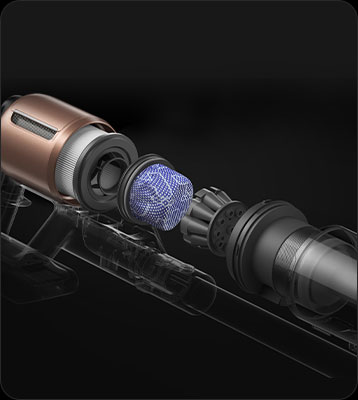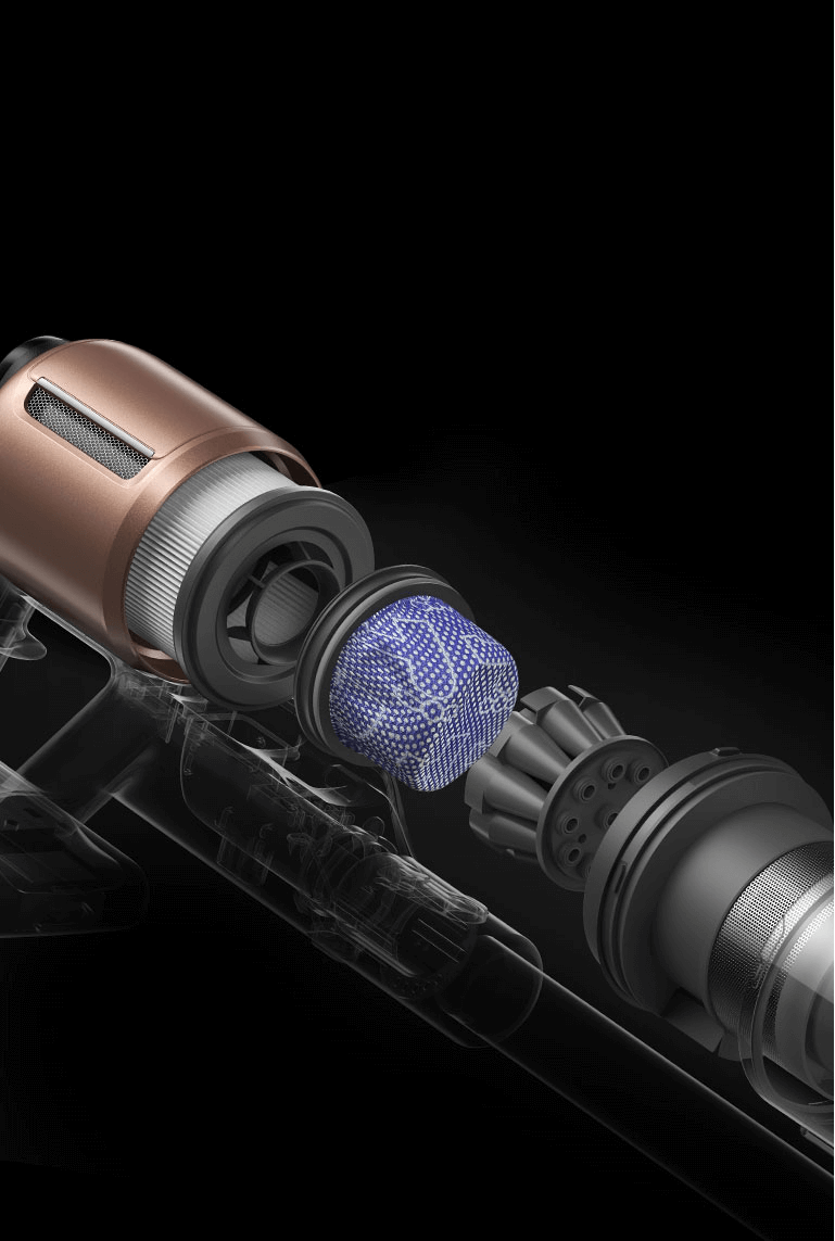 Mit dem Hochgeschwindigkeitsmotor und einem optimierten Luftzufuhrsystem, das Saugverluste reduziert, liefert der Z20 eine starke Saugleistung für eine hervorragende Tiefenreinigung.