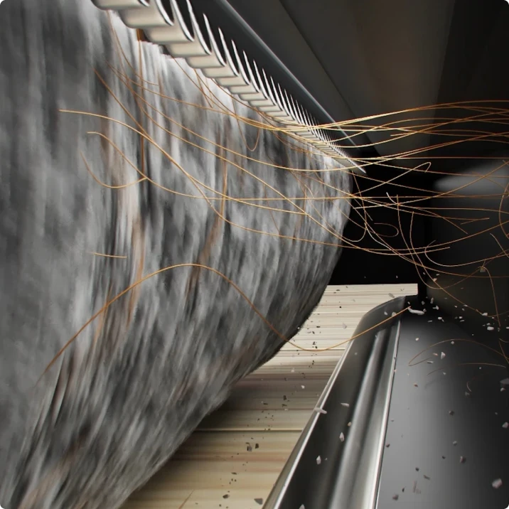 Ξεμπερδεύει τις τρίχες με την ξύστρα με την οδοντωτή χτένα