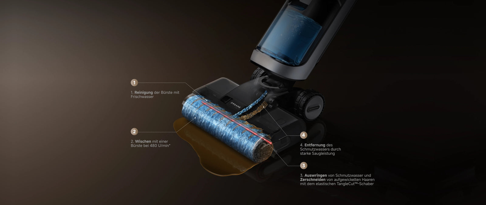 *Ζεστό νερό στους 60°C: Το σύστημα θέρμανσης PTC παρέχει μέγιστη θερμοκρασία 60°C, βάσει των συνθηκών δοκιμής του εργαστηρίου της Dreame. Η πραγματική θερμοκρασία του νερού και η απόδοση καθαρισμού μπορεί να διαφέρουν.