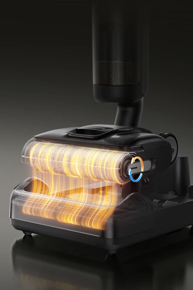 Μετά τον καθαρισμό, απλώς πιέστε μία φορά για να πλύνετε και να στεγνώσετε τη βούρτσα. Η υψηλή θερμότητα τροφοδοτεί μια πλήρως αυτόματη διαδικασία αυτοκαθαρισμού που εξαλείφει τη βρομιά και τις οσμές, απαλλάσσοντάς σας από τον κόπο του χειροκίνητου τριψίματος.