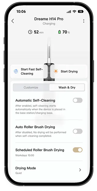 Πέρα από την αυτόματη διανομή διαλύματος, αυτή η ηλεκτρική σκούπα διαθέτει έναν ακόμα έξυπνο αισθητήρα που προσαρμόζει αυτόματα την ισχύ στις βρομιές που συναντά. Είτε πρόκειται για τρίχες κατοικίδιων είτε για ψίχουλα, η H14 Pro προσφέρει ικανοποιητική απόδοση, μεγιστοποιώντας την ενεργειακή απόδοση.