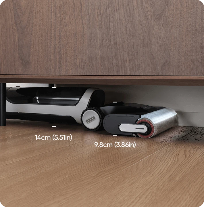 ¹180°, 14 εκ., 9,8 εκ.: Ολόκληρο το σώμα της ηλεκτρικής σκούπας μπορεί να φτάσει σε χώρους με ύψος μόλις 14 εκ. και