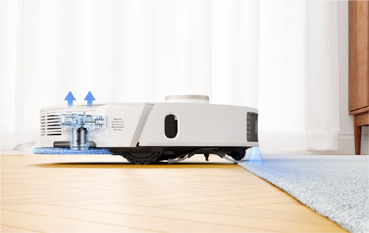 Η προηγμένη ανίχνευση χαλιών με υπερήχους επιτρέπει στην L20 Ultra να ανιχνεύει τα χαλιά και να επιστρέφει στον σταθμό βάσης για να αποσυνδέσει τις σφουγγαρίστρες της όταν έχει ρυθμιστεί να το κάνει και να διατηρεί τα χαλιά όμορφα και στεγνά. Η έξυπνη ενίσχυση αναρρόφησης εισχωρεί βαθιά μέσα στα χαλιά για να απομακρύνει την ενσωματωμένη σκόνη και τα υπολείμματα.