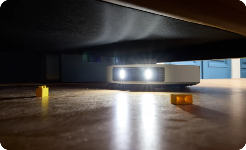 Με την ενσωματωμένη λυχνία LED, η σκούπα-ρομπότ αναγνωρίζει τα εμπόδια και καθαρίζει αποτελεσματικά σε σημεία με χαμηλό φωτισμό και σκοτεινά δωμάτια.