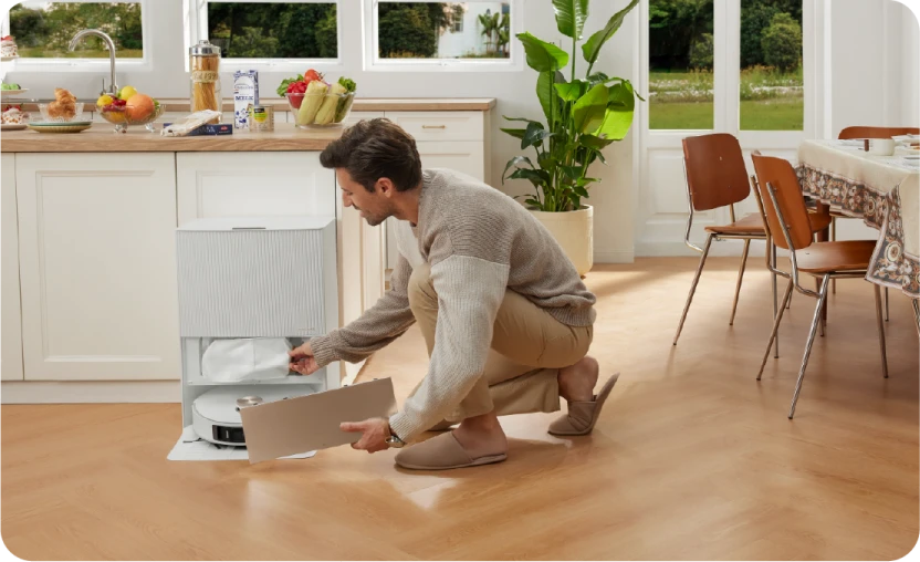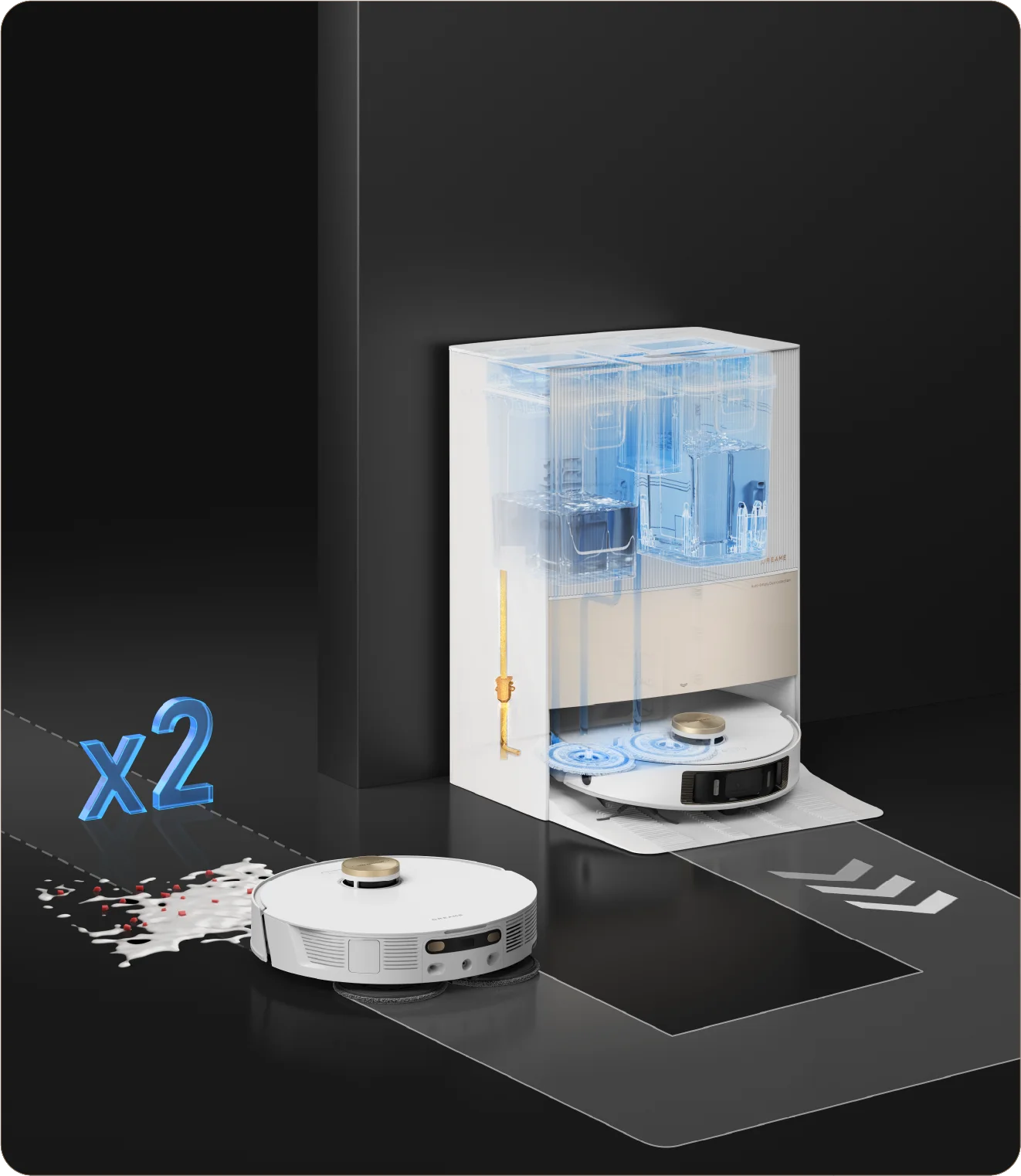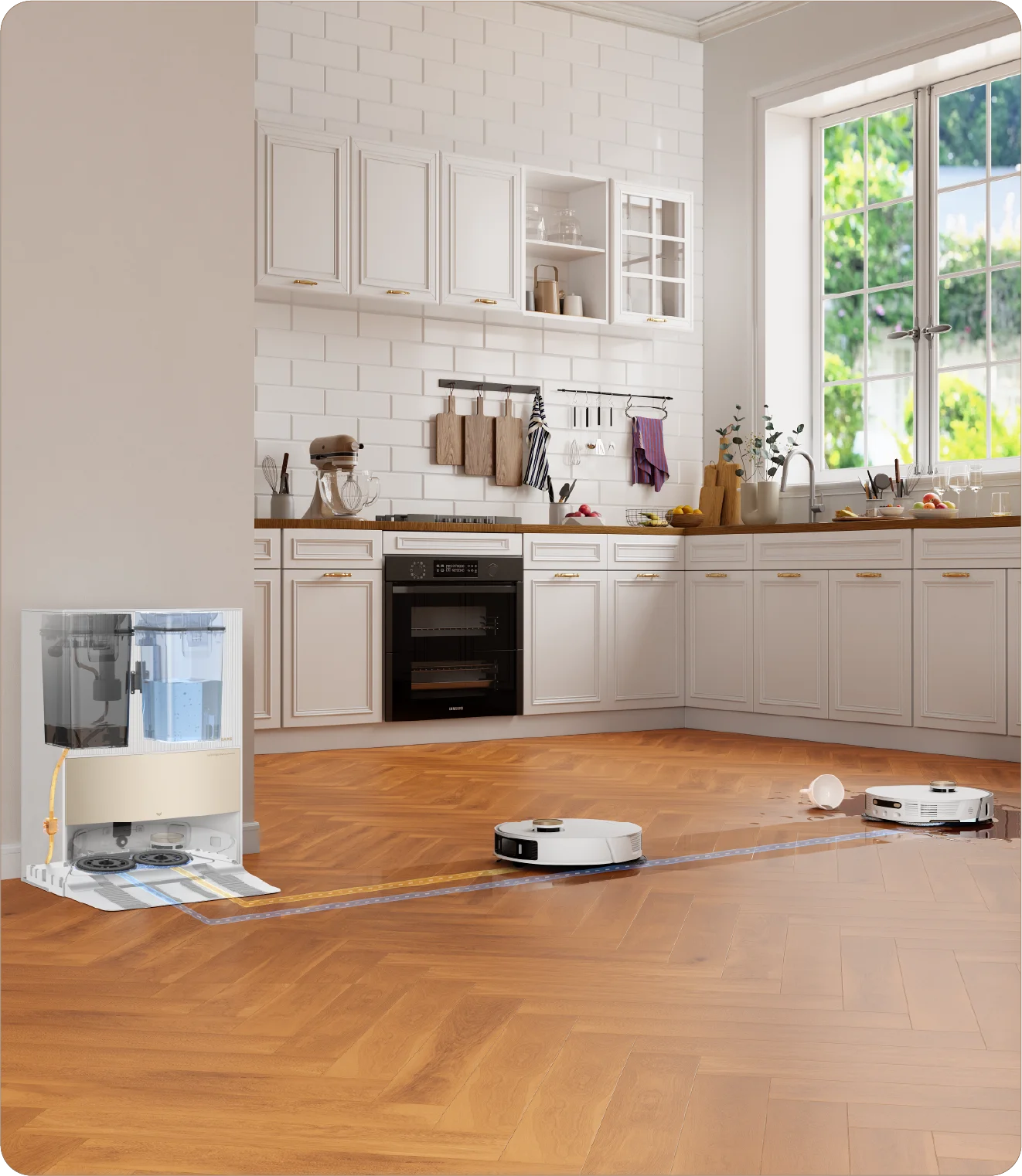 Αυτοματοποιήστε τον καθημερινό σας καθαρισμό και επιστρέψτε σε ένα σπίτι με φρεσκοκαθαρισμένα δάπεδα με ευχάριστη οσμή και όμορφη εμφάνιση χάρη στον πλήρως αυτόματο σταθμό βάσης. Διατηρήστε τη σκούπα σας σε άριστη κατάσταση με το αυτόματο άδειασμα, το πλύσιμο σφουγγαρίστρας, την αναπλήρωση νερού, την προσθήκη διαλύματος και άλλα, ώστε ο καθαρισμός σας να είναι πιο αυτόματος από ποτέ.