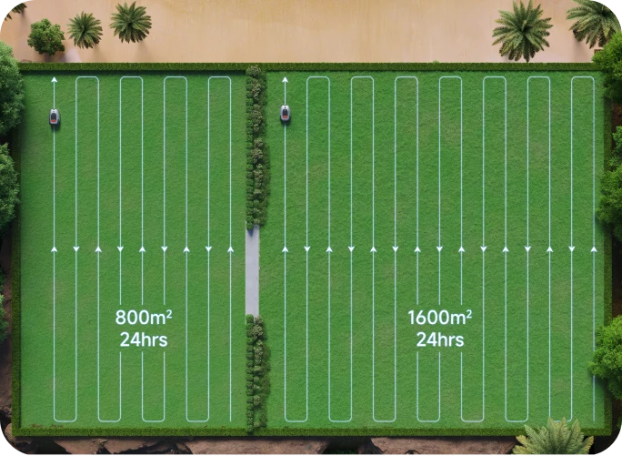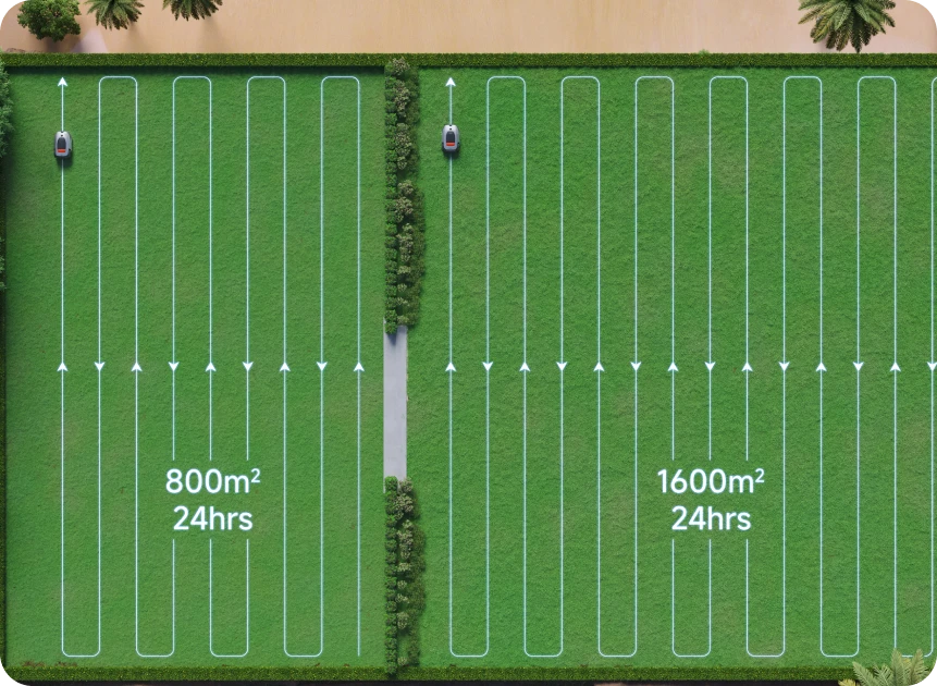 *2.000 m², 24 ώρες: Με βάση τα ενδοεταιρικά εργαστηριακά μας δεδομένα για τα A2 2000 και A2 3000. Το A2 1200 συντηρεί αυλές έως 1.200 m² σε 24 ώρες. Οι πραγματικές επιδόσεις μπορεί να διαφέρουν.