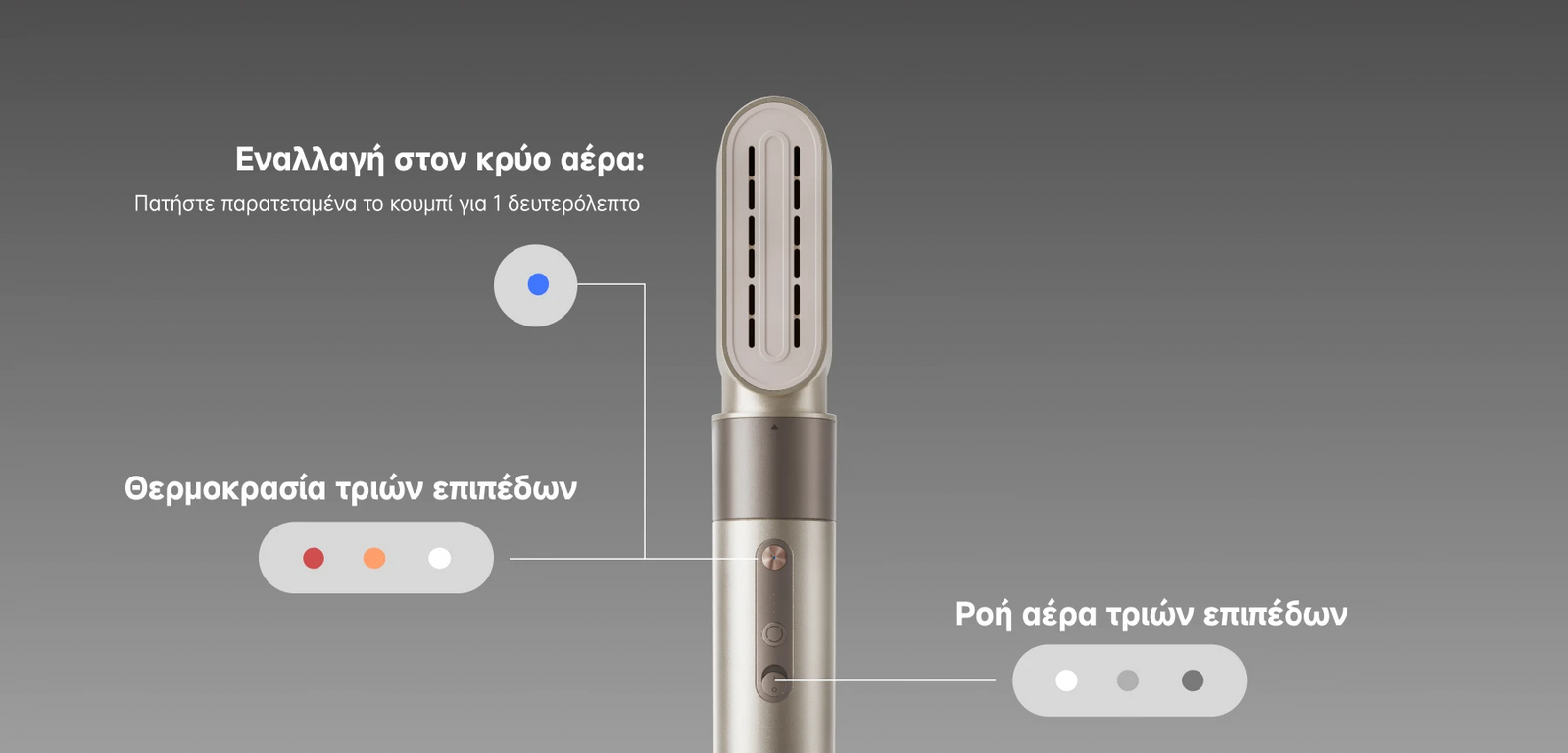 Το AirStyle Shine συνδυάζει το στέγνωμα και το styling ώστε να υποστηρίζει διάφορους τύπους μαλλιών. Εφαρμόζει το εφέ Coanda, όπου μια ελεγχόμενη ροή αέρα ακολουθεί με φυσικό τρόπο την επιφάνεια της τούφας μαλλιών, τυλίγοντας τη γύρω από ένα προσαρτώμενο εξάρτημα για εύκολο styling με λιγότερη θερμότητα.