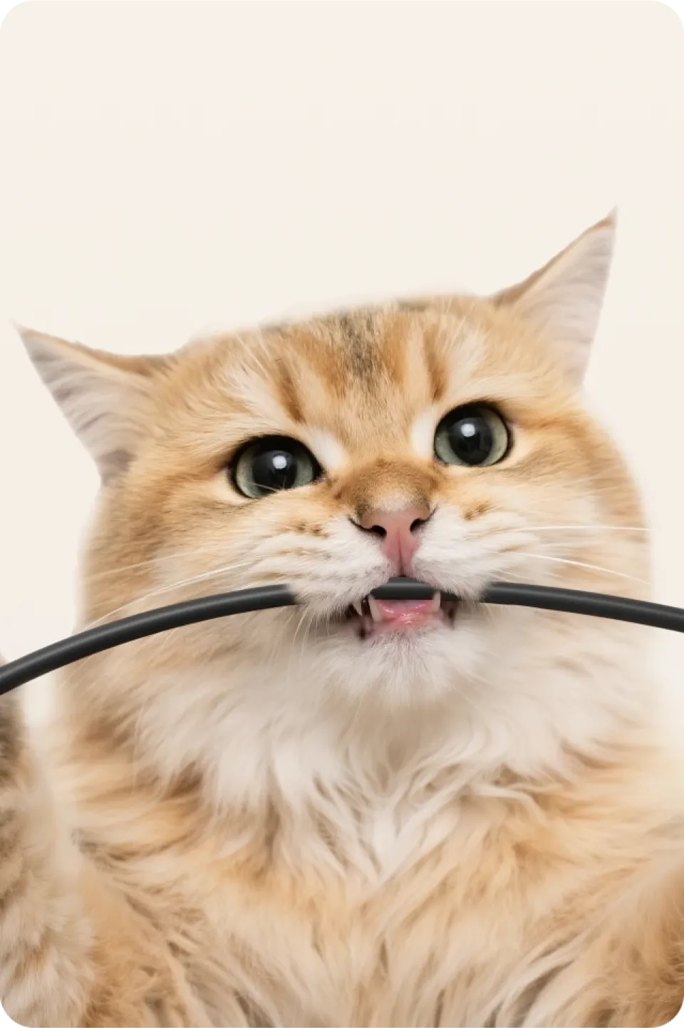 *Καλώδιο ρεύματος ανθεκτικό στα δαγκώματα: Διαθέτει κατασκευή κατά του δαγκώματος χωρίς πικρά πρόσθετα, παρέχοντας την ανώτερη προστασία από το δάγκωμα ή το τράβηγμα.