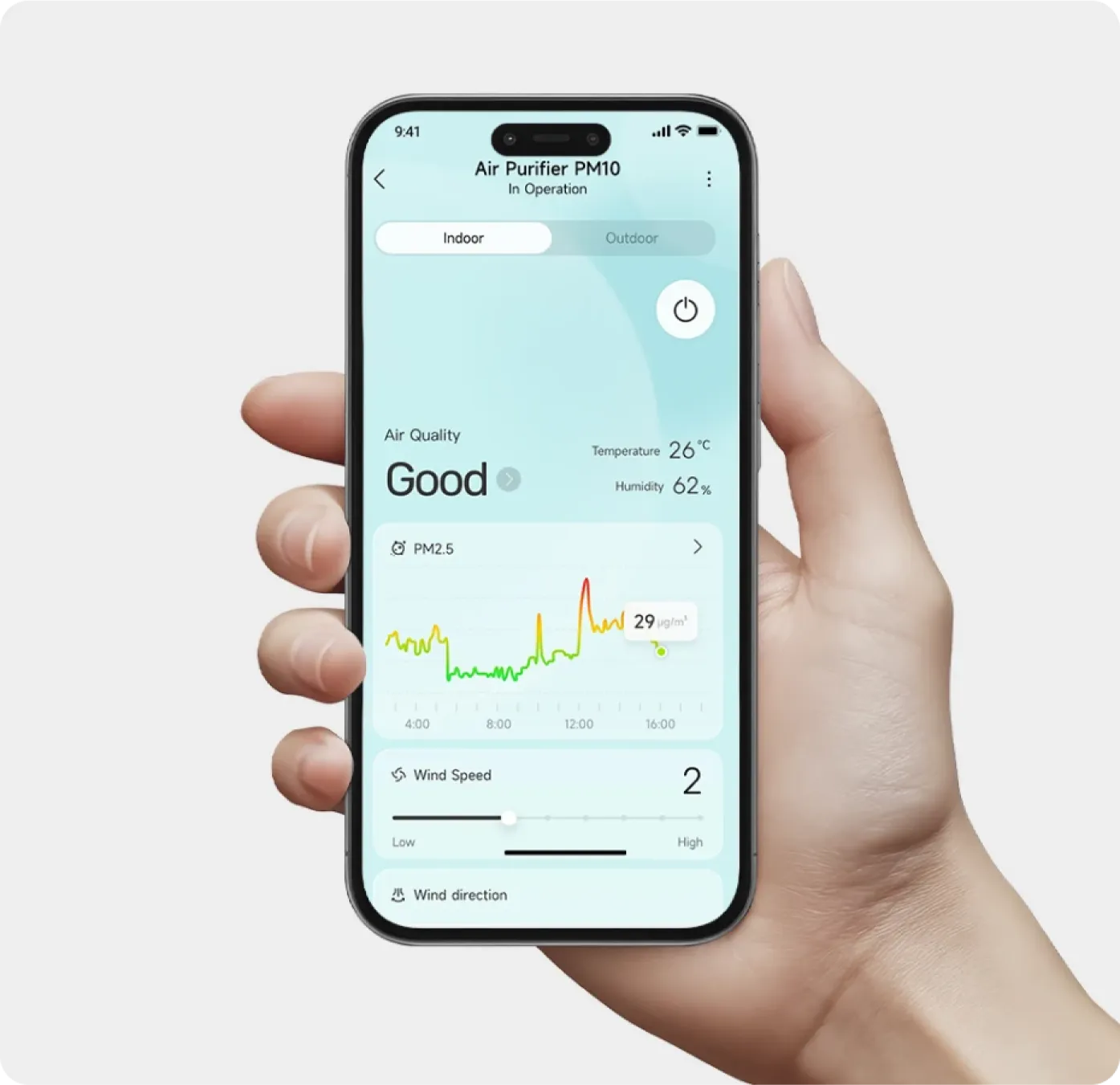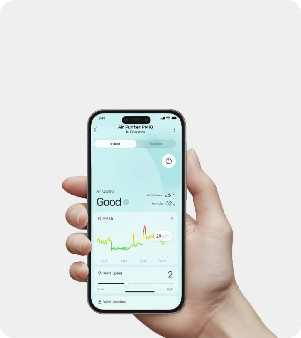 *Λειτουργία αυτόματου καθαρισμού: Η συσκευή προσαρμόζει αυτόματα την ταχύτητα ανεμιστήρα με βάση την ποιότητα αέρα σε πραγματικό χρόνο.