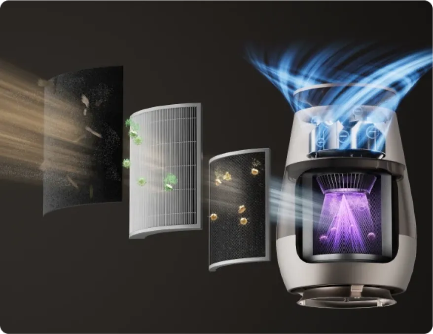 *99,9%: Η διεξαγωγή του πειράματος έγινε σε εργαστήριο τρίτου μέρους. Η πρωτότυπη μονάδα τοποθετήθηκε σε δοκιμαστικό θάλαμο 3 κ.μ. και ρυθμίστηκε στη λειτουργία για κατοικίδια. Κατά τη διάρκεια της δοκιμής, παρατηρήθηκε ότι μετά την ενεργοποίηση της συσκευής, οι τρίχες των κατοικίδιων αιχμαλωτίστηκαν στο φίλτρο, με ποσοστό αιχμαλώτισης 99,9%. Τα δεδομένα ελέγχθηκαν από εργαστήριο τρίτου μέρους. Αρ. αναφοράς FZCS-250905LW-01.