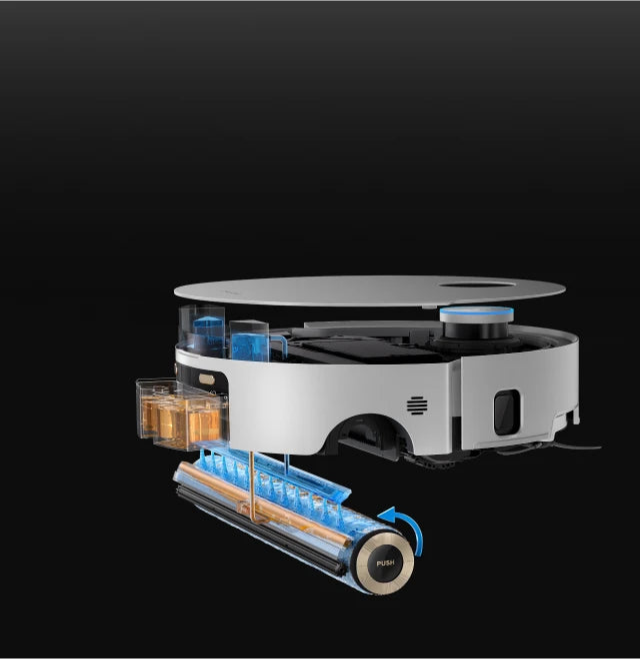 Το πρώτο προϊόν τεχνολογίας FluffRoll™ του κλάδου είναι κατασκευασμένο με πυκνές ίνες, επιτρέποντας στην κυλινδρική σφουγγαρίστρα να διεισδύει στις ρωγμές του δαπέδου και να καθαρίζει ξεραμένους λεκέδες πιο αποτελεσματικά. Διαθέτει μια μονάδα ξεχνουδιάσματος κυλίνδρου, η οποία περιστρέφεται προς την αντίθετη κατεύθυνση με ένα μοτέρ υψηλής ταχύτητας κατά το ξεχνούδιασμα, χαλαρώνοντας το πανάκι σφουγγαρίστρας καθώς έρχεται σε επαφή με το δάπεδο.