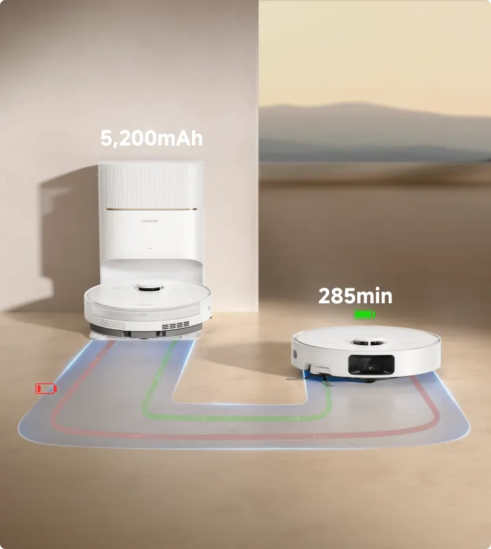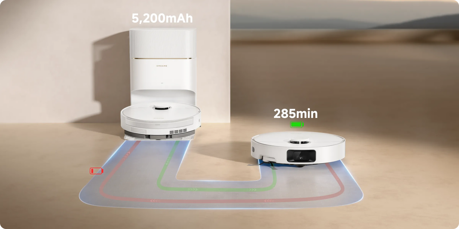 *285 λεπτά: Με βάση τα ενδοεταιρικά μας εργαστηριακά δεδομένα στη λειτουργία Σκούπισμα και σφουγγάρισμα. Η πραγματική απόδοση μπορεί να διαφέρει.