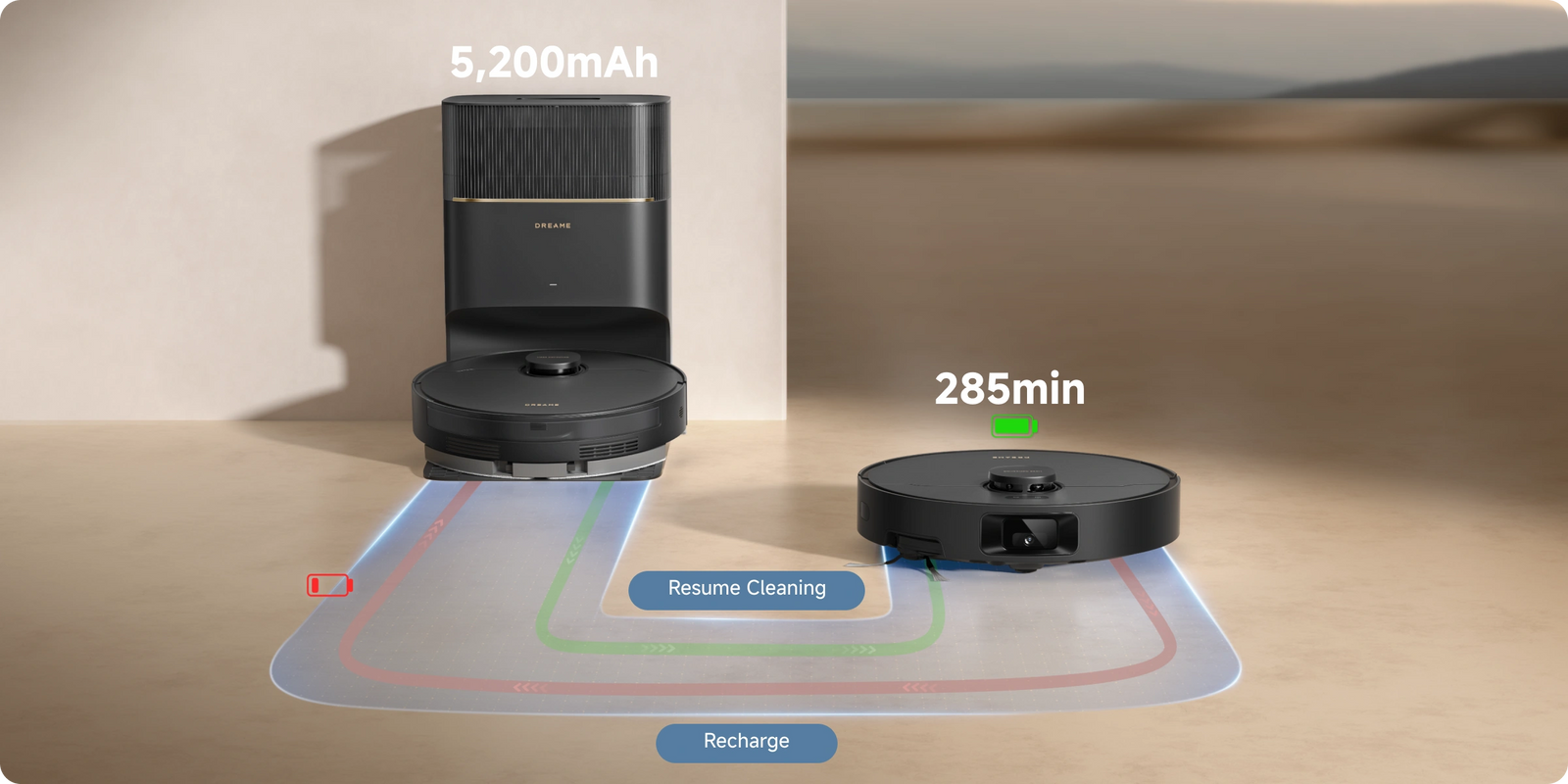 *285 λεπτά: Με βάση τα ενδοεταιρικά μας εργαστηριακά δεδομένα στη λειτουργία Σκούπισμα και σφουγγάρισμα. Η πραγματική απόδοση μπορεί να διαφέρει.