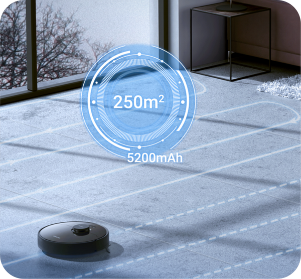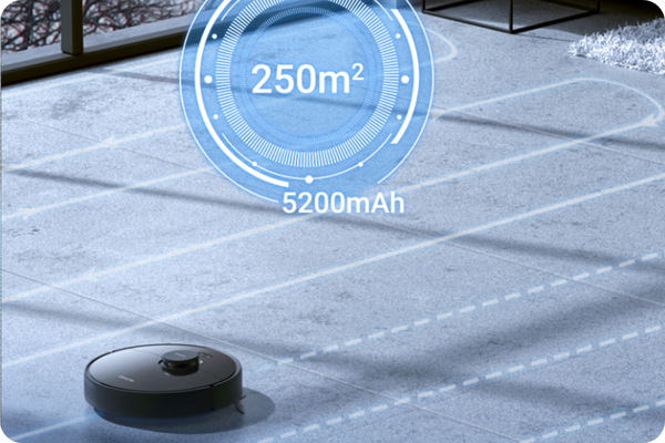 Καθαρίζει έως και 250 ㎡* με μία φόρτιση.
