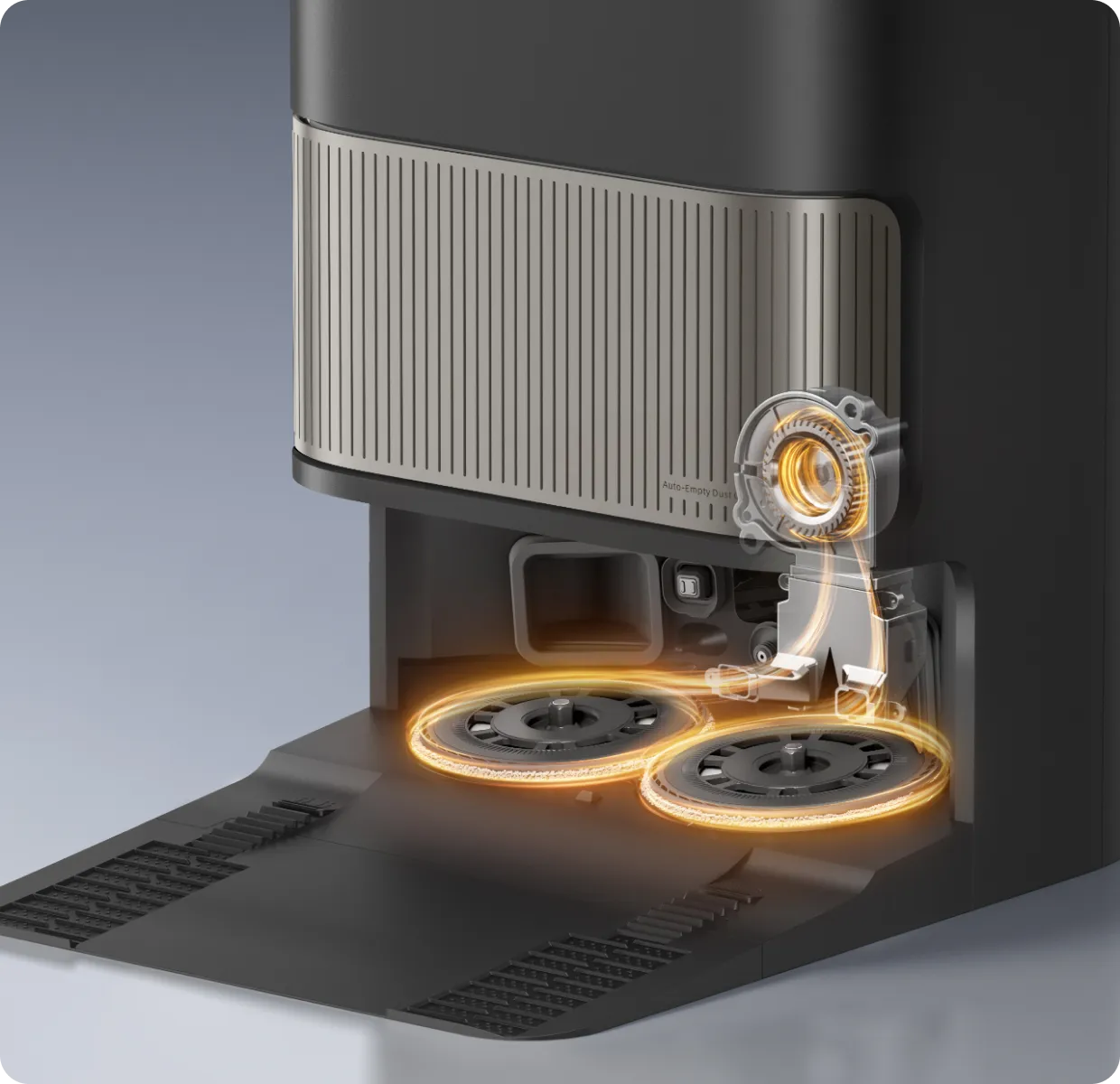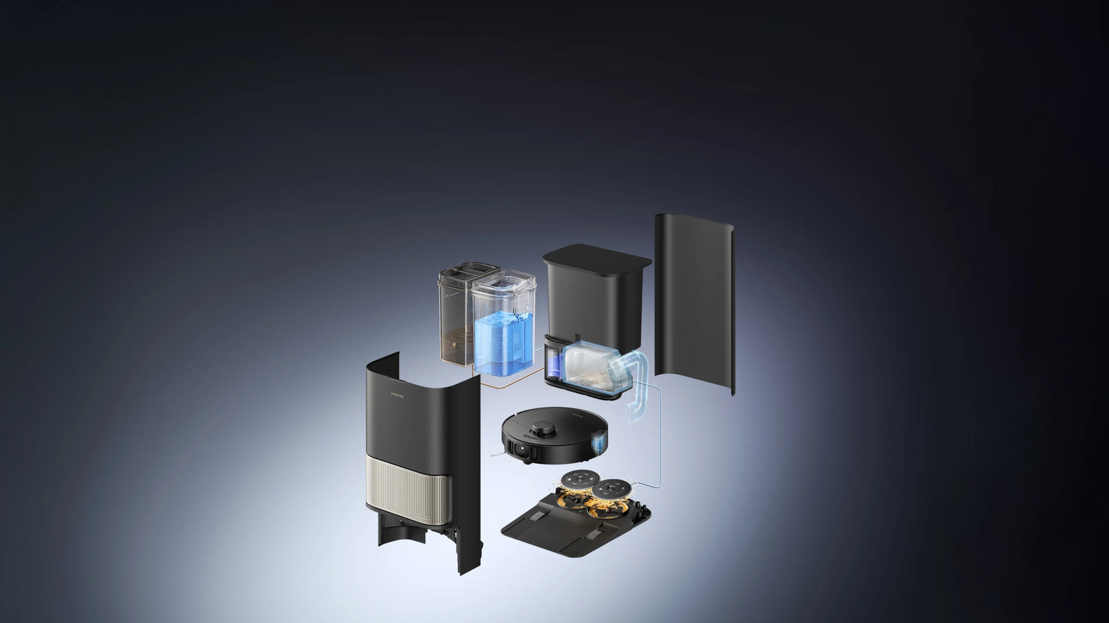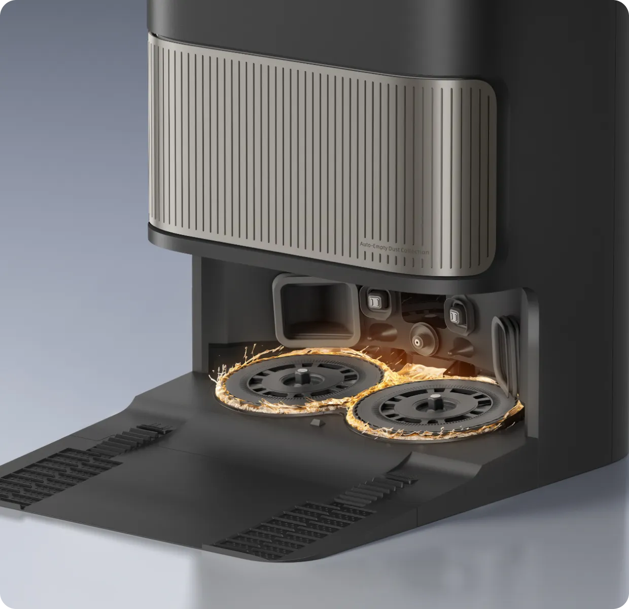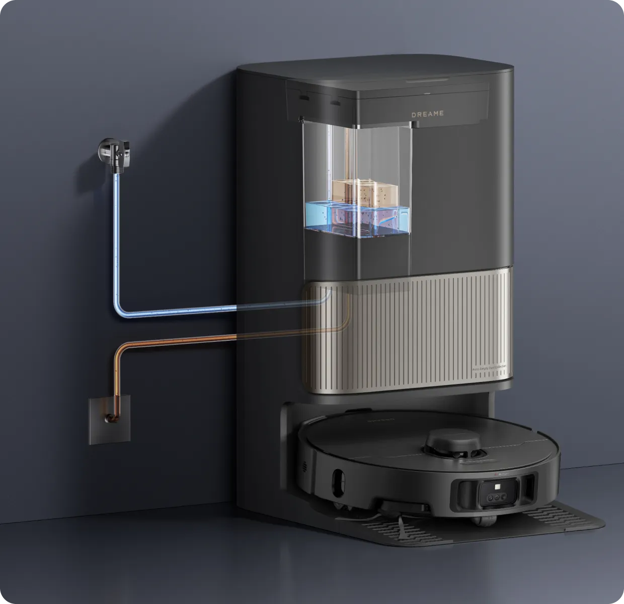 Μετά το σφουγγάρισμα, η βάση χρησιμοποιεί τον αισθητήρα χρώματος για να αξιολογήσει πόσο βρώμικα είναι τα υγρά κατάλοιπα. Εάν είναι πολύ θολά, η ηλεκτρική σκούπα-ρομπότ θα πλύνει ξανά τις σφουγγαρίστρες πριν από τον δεύτερο γύρο καθαρισμού και θα διασφαλίσει ότι τα δάπεδα καθαρίζονται πάντα με καθαρές σφουγγαρίστρες.
