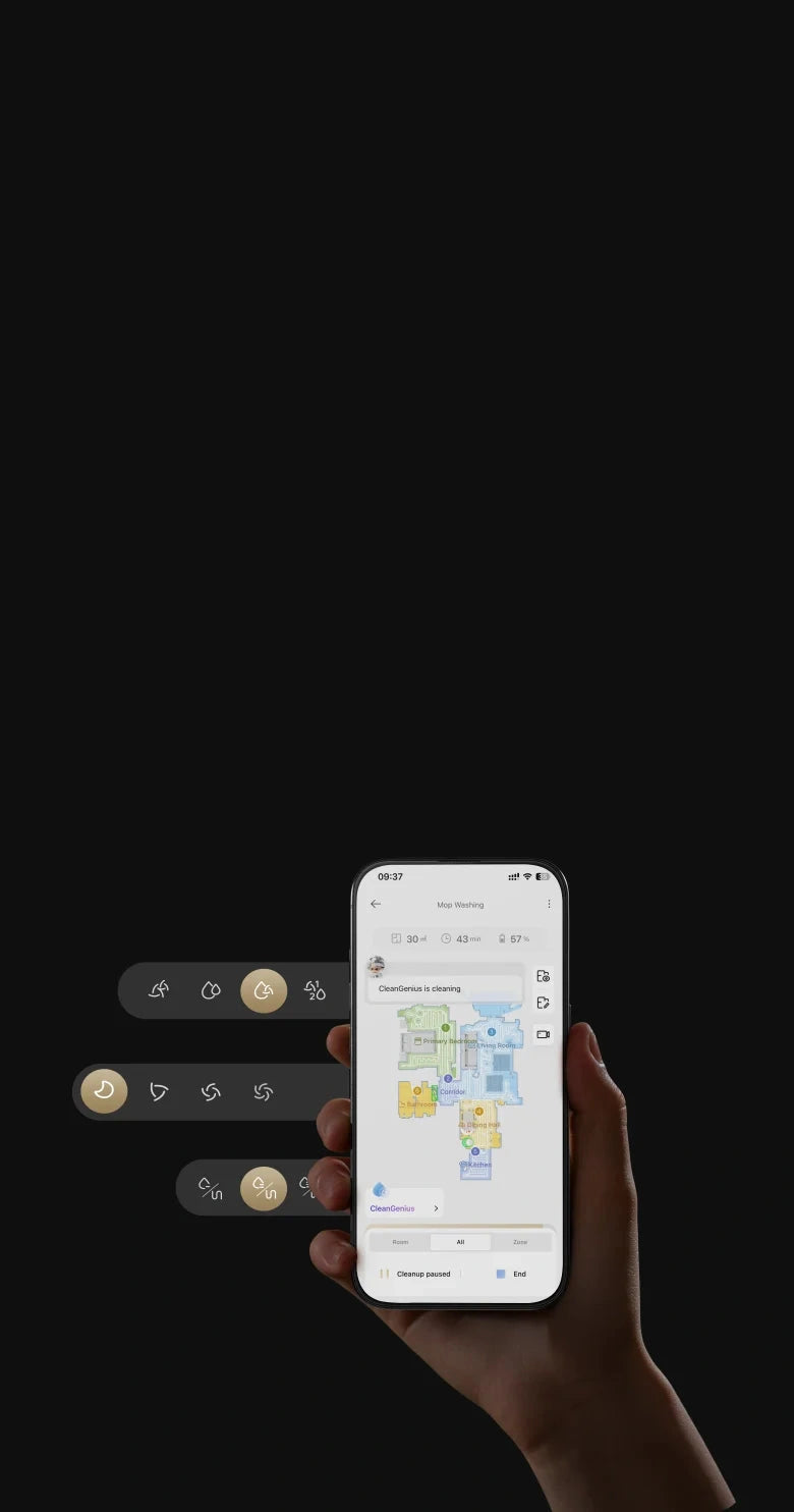Η L40s Pro Ultra αναγνωρίζει τα χαλιά και τα πατάκια σας και αποφασίζει ποιες βέλτιστες στρατηγικές καθαρισμού θα χρησιμοποιήσει. Εναλλακτικά, μπορείτε να δημιουργήσετε ένα εξατομικευμένο πρόγραμμα για αποτελέσματα ακόμη πιο κοντά στις ανάγκες σας.