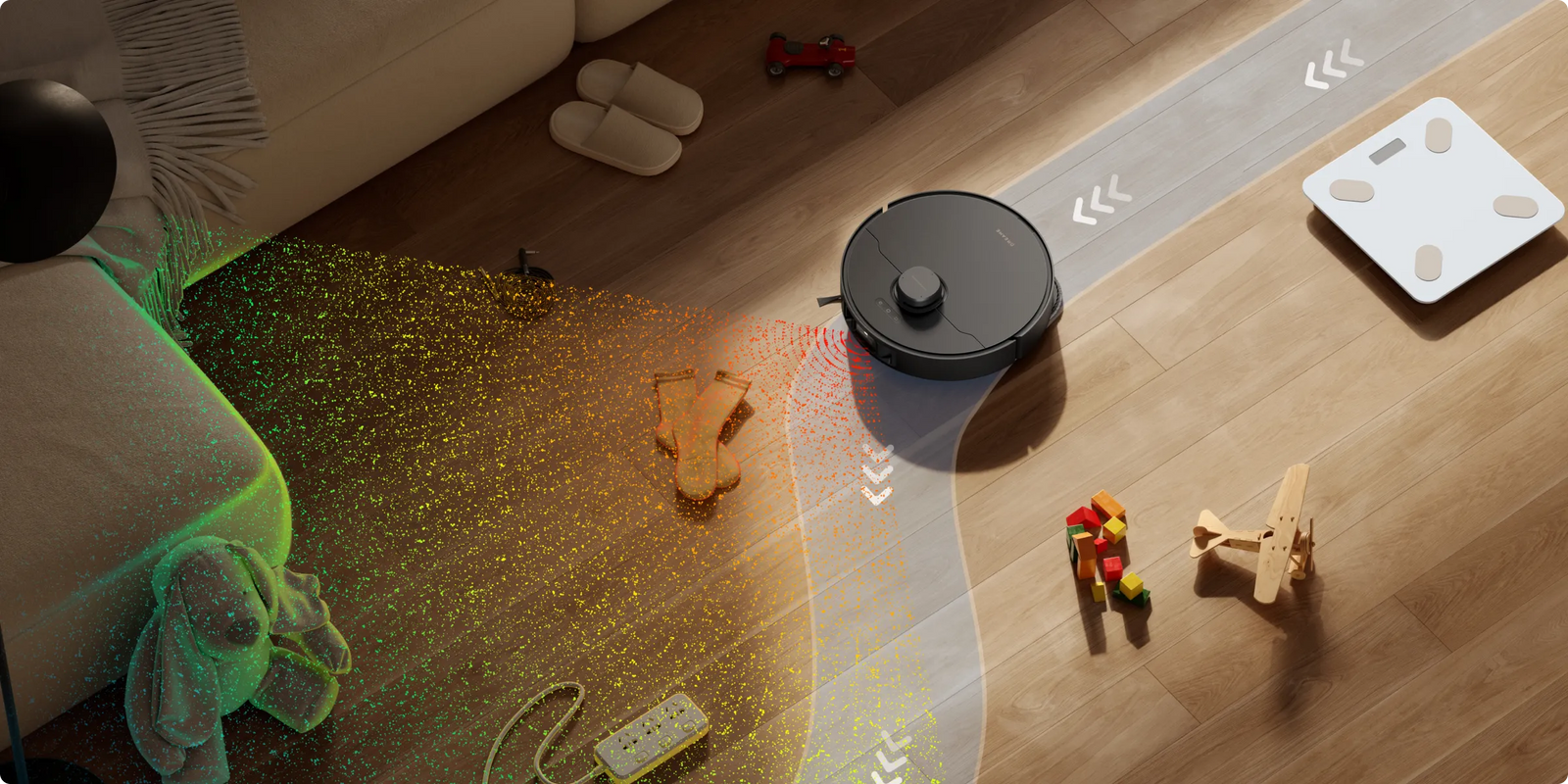 Η L40s Pro Ultra αναγνωρίζει και αποφεύγει έξυπνα τα καθημερινά οικιακά αντικείμενα*. Επιπλέον, τα ενσωματωμένα φώτα LED φωτίζουν τη διαδρομή της ηλεκτρικής σκούπας-ρομπότ για ελιγμούς ακριβείας ακόμα και σε συνθήκες χαμηλού φωτισμού.