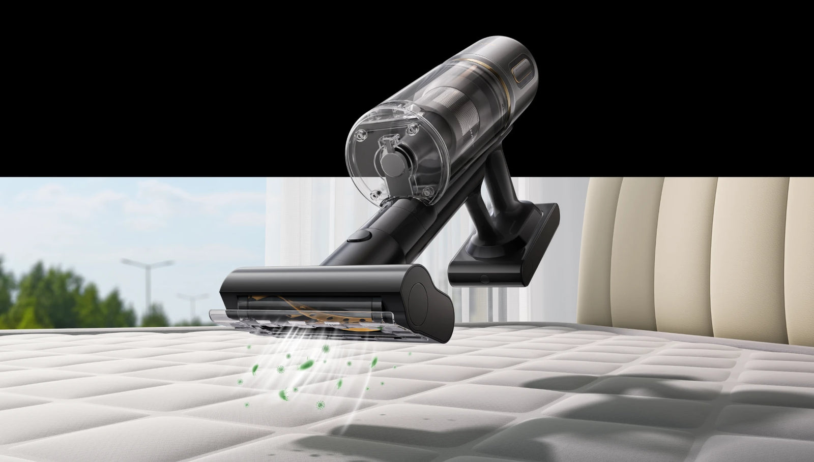 Αφαιρεί μέχρι και το 100% των ακάρεων από τα στρώματα με τη μηχανοκίνητη μίνι βούρτσα για ένα πιο υγιεινό, χωρίς αλλεργιογόνα ύπνο.*