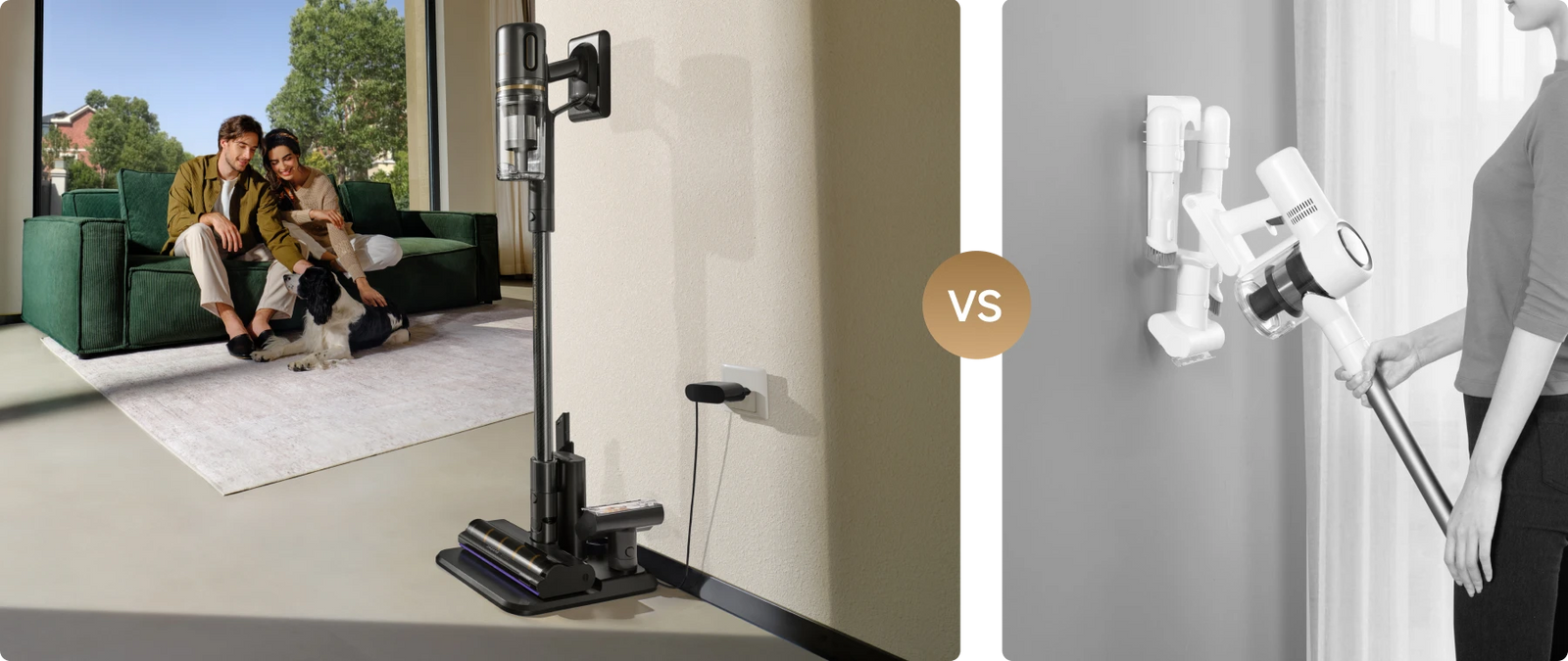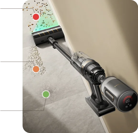 Η V20 φορτίζει ενώ βρίσκεται σε θέση φύλαξης, διασφαλίζοντας έτσι ότι είναι πάντα έτοιμη για χρήση. Η σκούπα και τα αξεσουάρ είναι τοποθετημένα σε ασφαλές μέρος στη βάση για εύκολη πρόσβαση και οργάνωση.