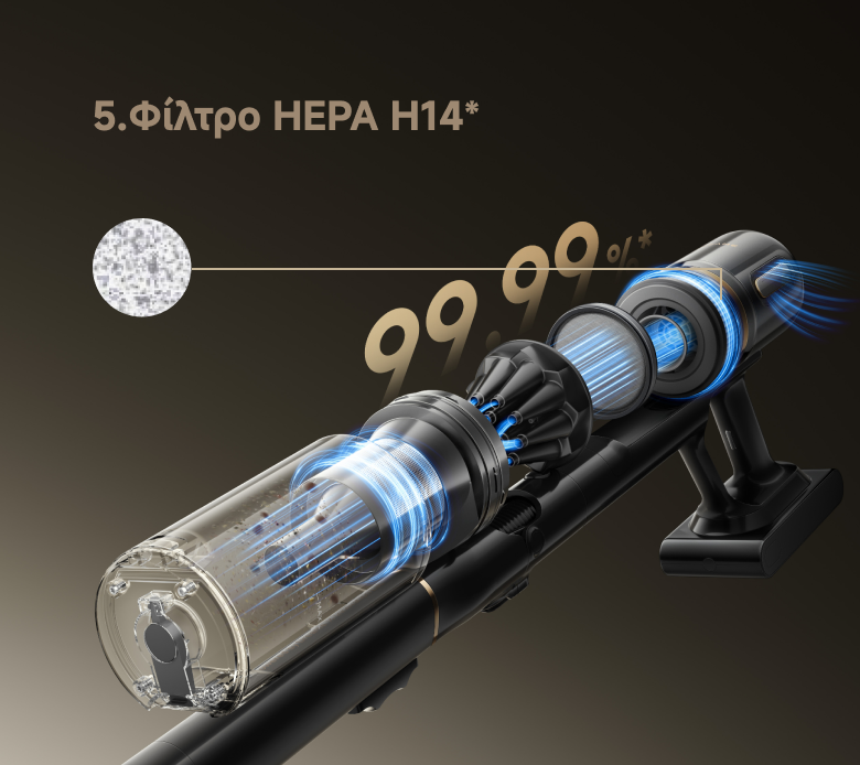 *HEPA-Φίλτρο H14: Το υλικό του φίλτρου επιτυγχάνει επίπεδο φιλτραρίσματος HEPA κατηγορίας H14 σύμφωνα με τα πρότυπα EN 1822-1:2019, EN ISO 29463-3:2018, με βάση δοκιμές που διεξάχθηκαν από τη Suzhou GTT Service Co.,Ltd, Αρ. αναφοράς 0340-24A-01.