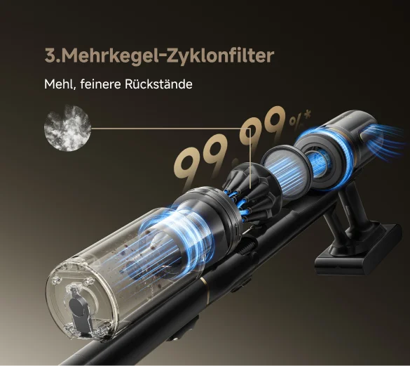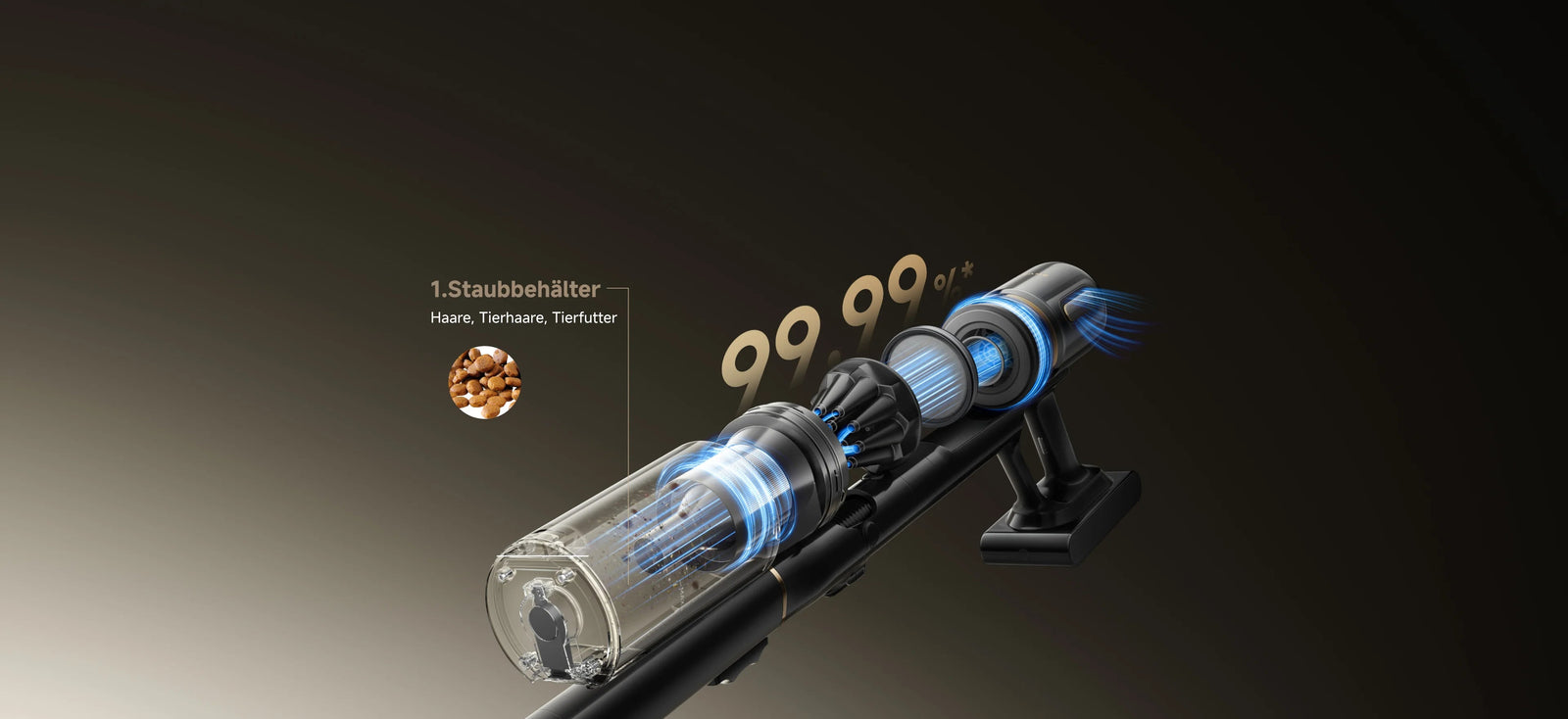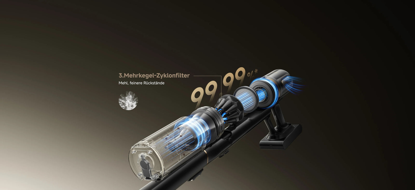 Η προηγμένη τεχνολογία κυκλώνα παράγει ισχυρή φυγόκεντρο δύναμη που διαχωρίζει αποτελεσματικά τη σκόνη και αποτρέπει το φράξιμο του φίλτρου, ασταμάτητη αναρρόφηση από την αρχή ως το τέλος..