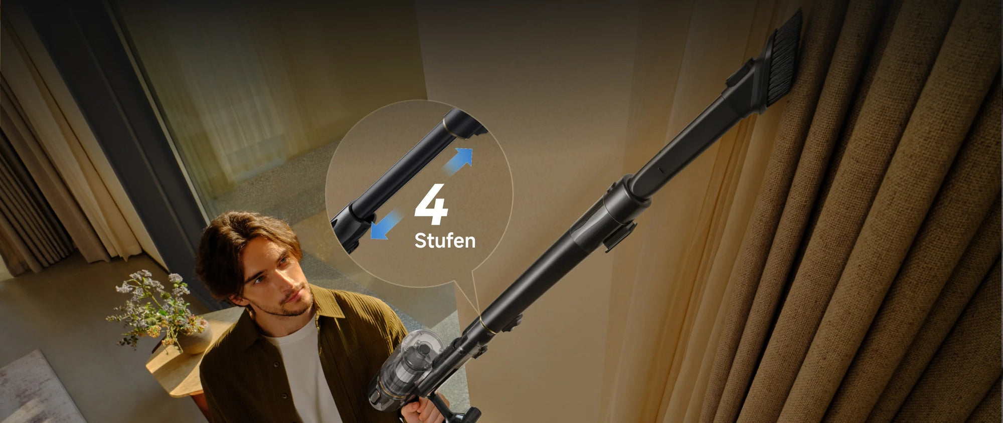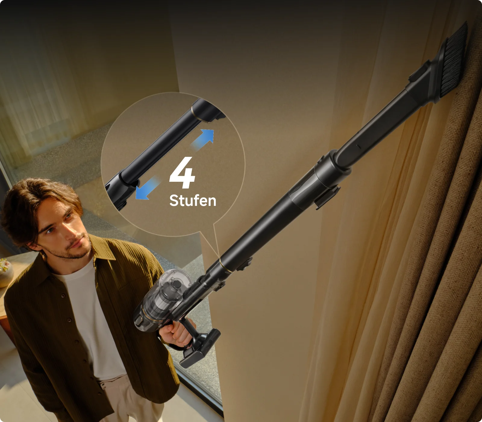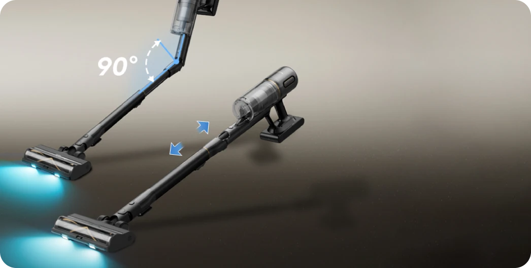 Πτυσσόμενη κατά 90° + 4 στάδια επέκτασης — Καθαρίζει βαθύτερα κάτω από χαμηλά έπιπλαn