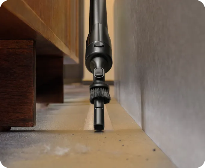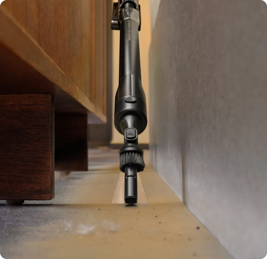 Με έξυπνη διαίσθηση υπερύθρων, ο βραχίονας χαμηλώνει αυτόματα για να κλείσει κενά κοντά στον τοίχο - φτάνοντας τόσο κοντά μέχρι και 0 χιλ.* για να βελτιώσει το καθάρισμα στις άκρες και να μειώσει τη μετέπειτα κούραση.