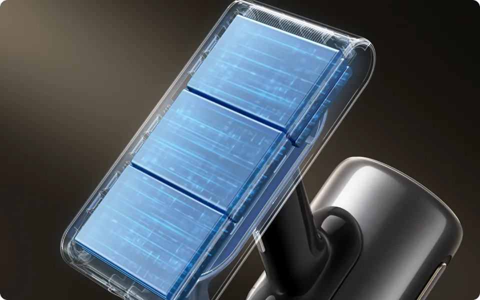 *90 λεπτά: Σύμφωνα με δοκιμές από το εργαστήριο της Dreame, στη λειτουργία Eco με το πολυεργαλείο.