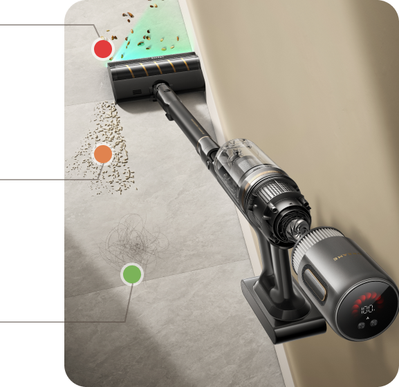Το φως CelesTect™ αποκαλύπτει την κρυμμένη σκόνη, ενώ ο αισθητήρας σκόνης ανιχνεύει το μέγεθος και τον όγκο των σωματιδίων για πιο έξυπνο καθάρισμα.