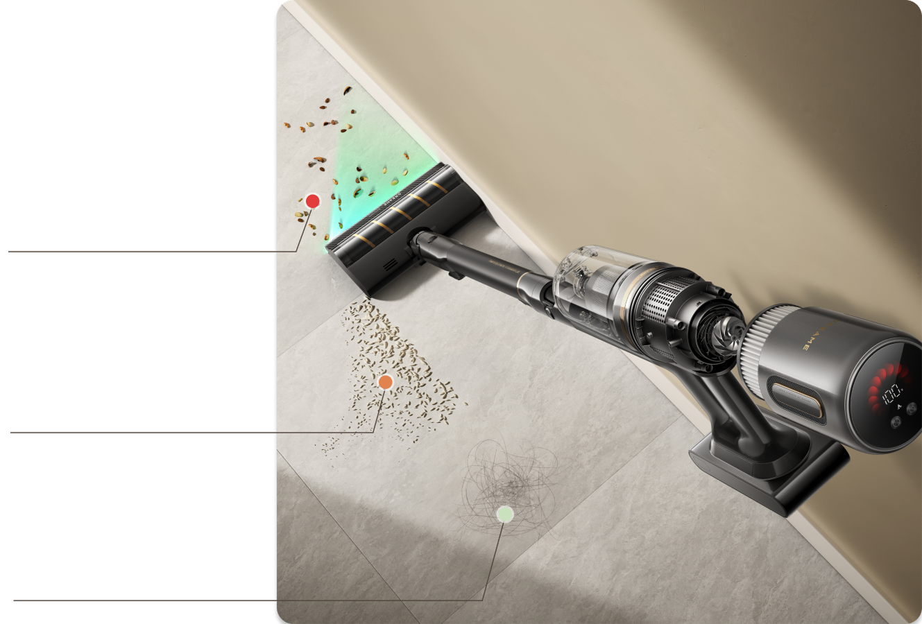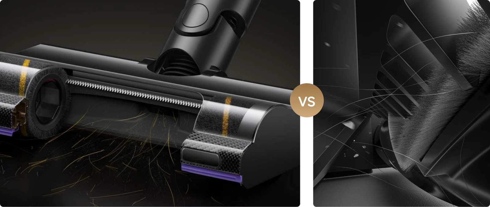 Ο αναβαθμισμένος μαλακός κύλινδρος βούρτσας της V20 Pro-A αντικαθιστά τις παραδοσιακές χτένες απεμπλοκής με διπλές μηχανοκίνητες ξύστρες που κόβουν αποτελεσματικά τις τρίχες κατά τη διάρκεια του σκουπίσματος - διατηρώντας τη βούρτσα καθαρή και μειώνοντας την ανάγκη για επαναλαμβανόμενη χειροκίνητη αφαίρεση τριχών. Αυτός ο προηγμένος μηχανισμός αντιμετωπίζει τις παγιδευμένες τρίχες πιο αποτελεσματικά και με μεγαλύτερη ακρίβεια.