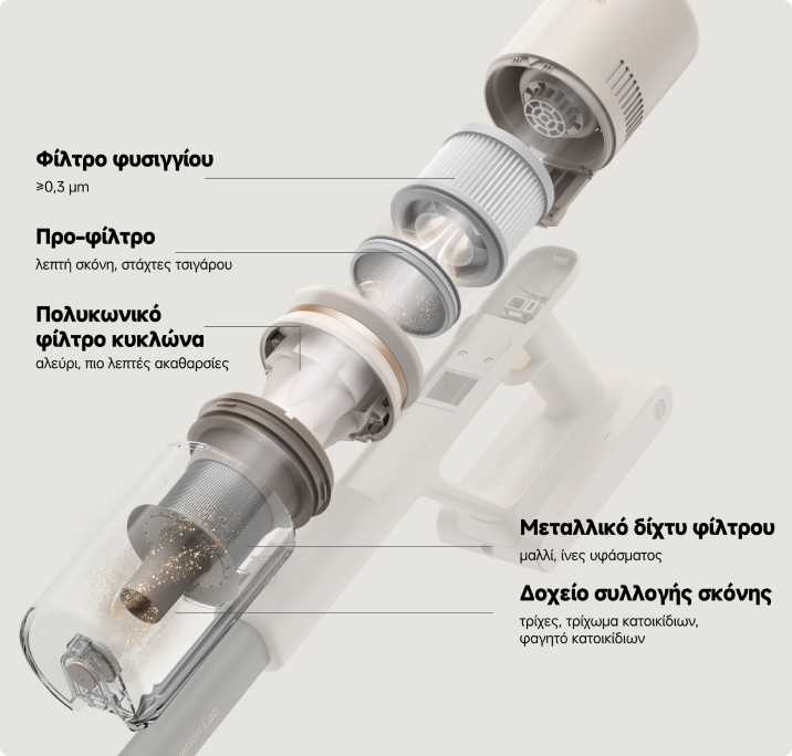 *40 λεπτά: Σύμφωνα με δοκιμές από το εργαστήριο της Dreame, στη λειτουργία Eco με το πολυεργαλείο. Ο πραγματικός χρόνος λειτουργίας μπορεί να διαφέρει ανάλογα με τις συνθήκες χρήσης.